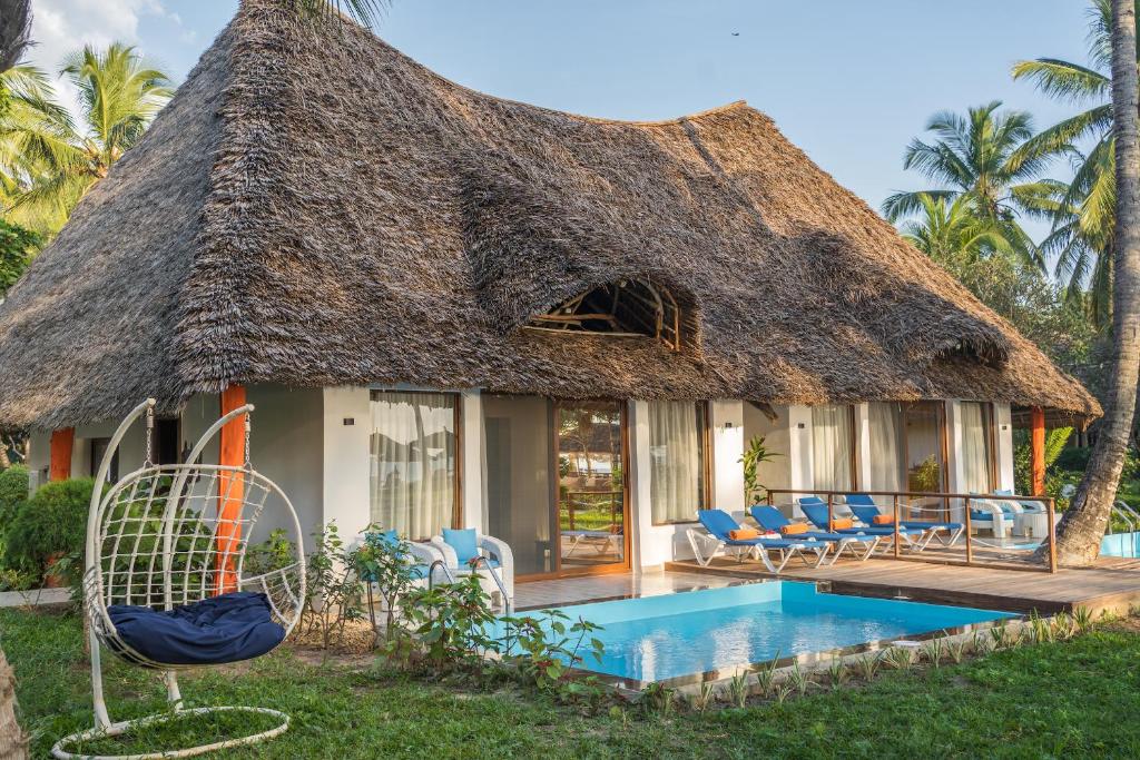 Prime Beachfront Location: Kiwengwa Beach Resort in Kiwengwa Village offers direct beachfront access and stunning sea views. Guests can relax on the sun terrace or take a dip in the saltwater swimming pool. Exceptional Facilities: The resort features a fitness centre, tennis court, spa facilities, and a hot tub. Free WiFi is available throughout the property, ensuring connectivity for all visitors. Comfortable Accommodations: Rooms include air-conditioning, private bathrooms, and balconies with sea views. Additional amenities include bathrobes, minibars, and flat-screen TVs, catering to all guest needs. Dining Experience: The family-friendly restaurant serves African, Italian, and international cuisines in a traditional and modern ambience. Guests can enjoy lunch and dinner with vegetarian, vegan, and gluten-free options.