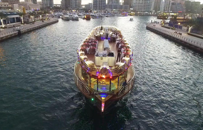 The dhows are a traditional boat that was used for trade and transportation. Nowadays, these dhows were converted into restaurants with two decks: the air-conditioned lower deck and the open-air upper deck.
