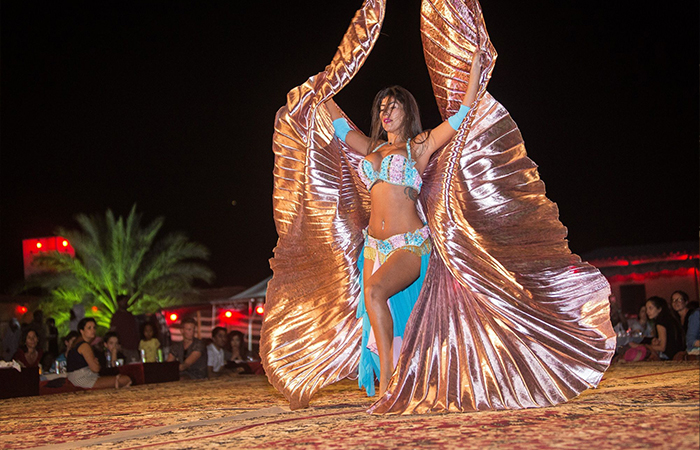 Join us to relax and have a delicious BBQ dinner under the starry Arabian sky while enjoying live folk shows, belly-dancing, tanura, and fireworks.