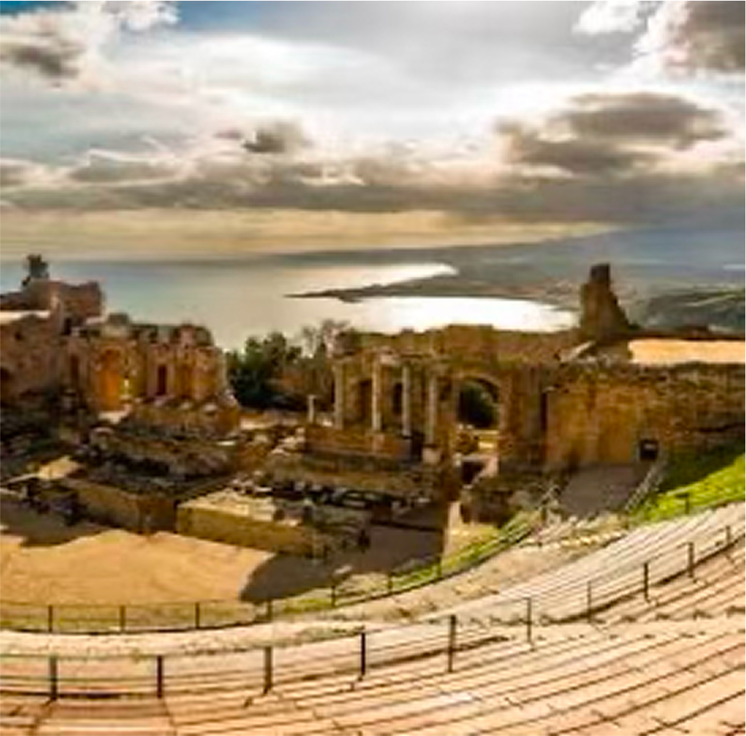 Taormina is a picturesque small town located at the foot of Mount Tauro (204 m), famous for its Greco-Roman theater, an impressive testament to ancient history. It offers breathtaking views of Mount Etna and the Bay of Taormina, making the visit unforgettable. It is a must to stroll through the typical streets with their small souvenir shops and local artisan workshops, perfect for finding unique products, from ceramic crafts to handmade jewelry. The excursion is not guided.