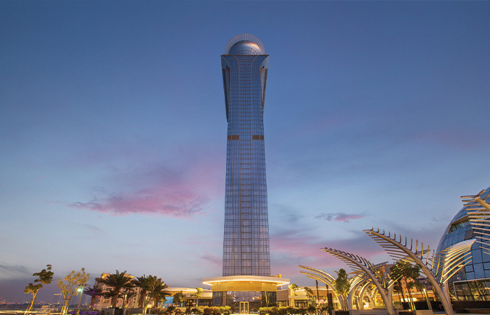 The View, an observation deck on the 52nd floor of the Palm Tower, connected with Nakheel Mall and its 350 shops, restaurants, and attractions. From the mall's roof, a rapid elevator ascent takes you 240 meters above the island.